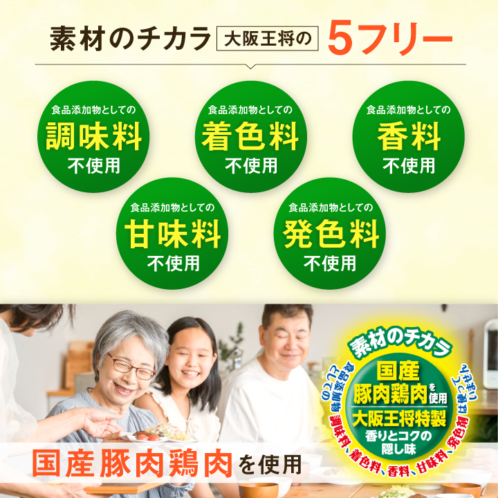 大阪王将公式通販本店は、2023年3月8日にサイトの全面リニューアルをいたしました。 スマートフォンやタブレット端末からもご利用いただきやすいレスポンシブデザインを採用しております。 今後ともご愛顧賜りますようお願い申し上げます。
