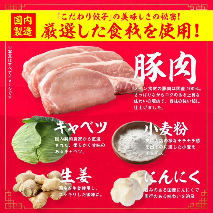 【原材料】《ぎょうざ》野菜〔キャベツ(国産)、にら〕、豚ハラミ、豚脂、豚肉、ラード、粒状