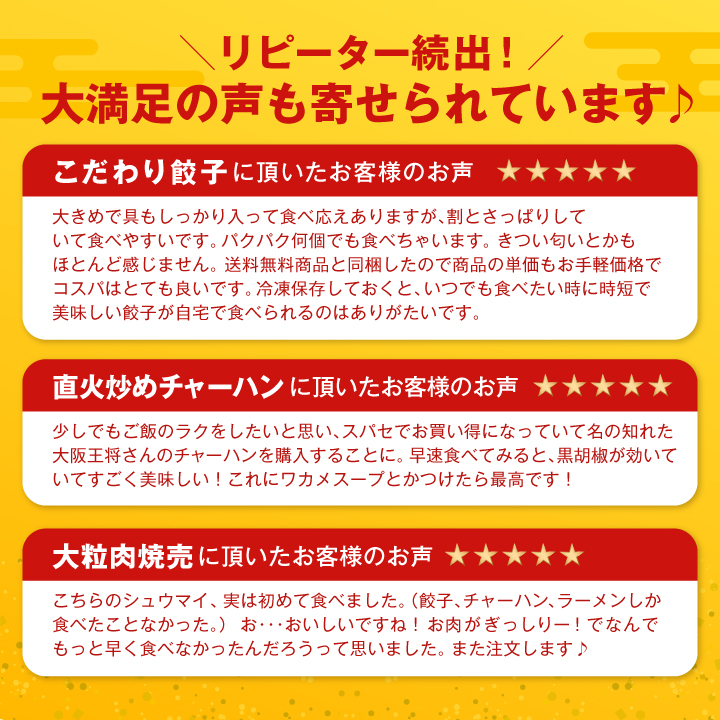 大阪王将公式通販本店は、2023年3月8日にサイトの全面リニューアルをいたしました。 スマートフォンやタブレット端末からもご利用いただきやすいレスポンシブデザインを採用しております。 今後ともご愛顧賜りますようお願い申し上げます。