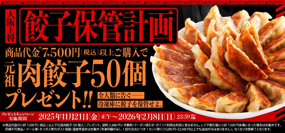 大阪王将公式通販本店は、2023年3月8日にサイトの全面リニューアルをいたしました。 スマートフォンやタブレット端末からもご利用いただきやすいレスポンシブデザインを採用しております。 今後ともご愛顧賜りますようお願い申し上げます。